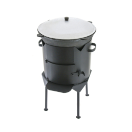 Универсальный набор, в который входит не только настоящий чугунный казан для плова и других блюд, но и специальный очаг с дымоходом и заслонкой. Идеальный вариант для приготовления еды на открытом огне для семьи или компании из 3-8 человек. Казан имеет традиционное округлое дно и плотную чугунную крышку обычной формы с ручкой (не сковорода). Толщина стенок – 4-5 мм. Вес казана – немногим более 8 кг. При желании такую чугунную посуду можно взять с собой на пикник или в многодневную автомобильную поездку.