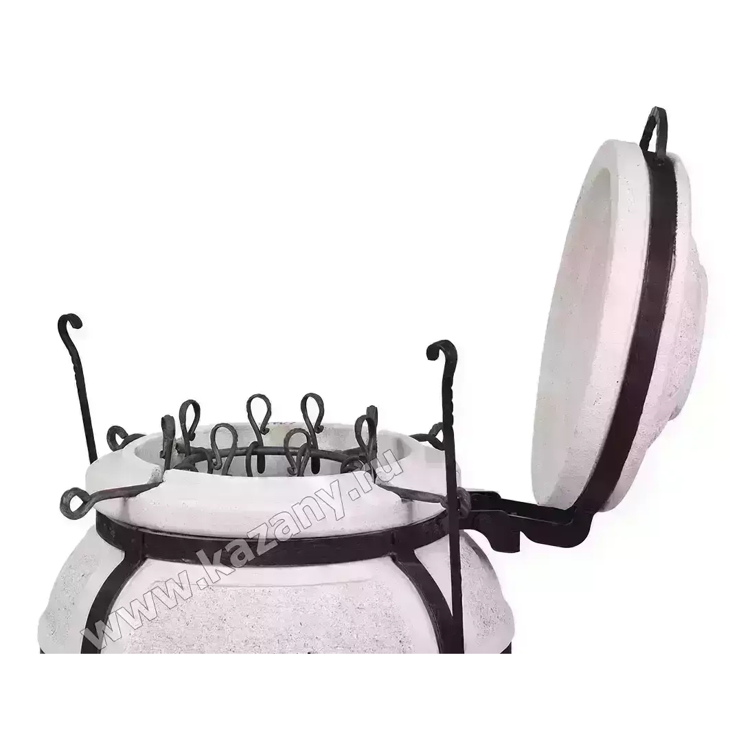 Транспортировка тандыра осуществляется на автомобиле. Можно поднять его на борт, взяв за удобные ручки. Металлические комплектующие печи прошли ковку, поэтому они имеют запас прочности.